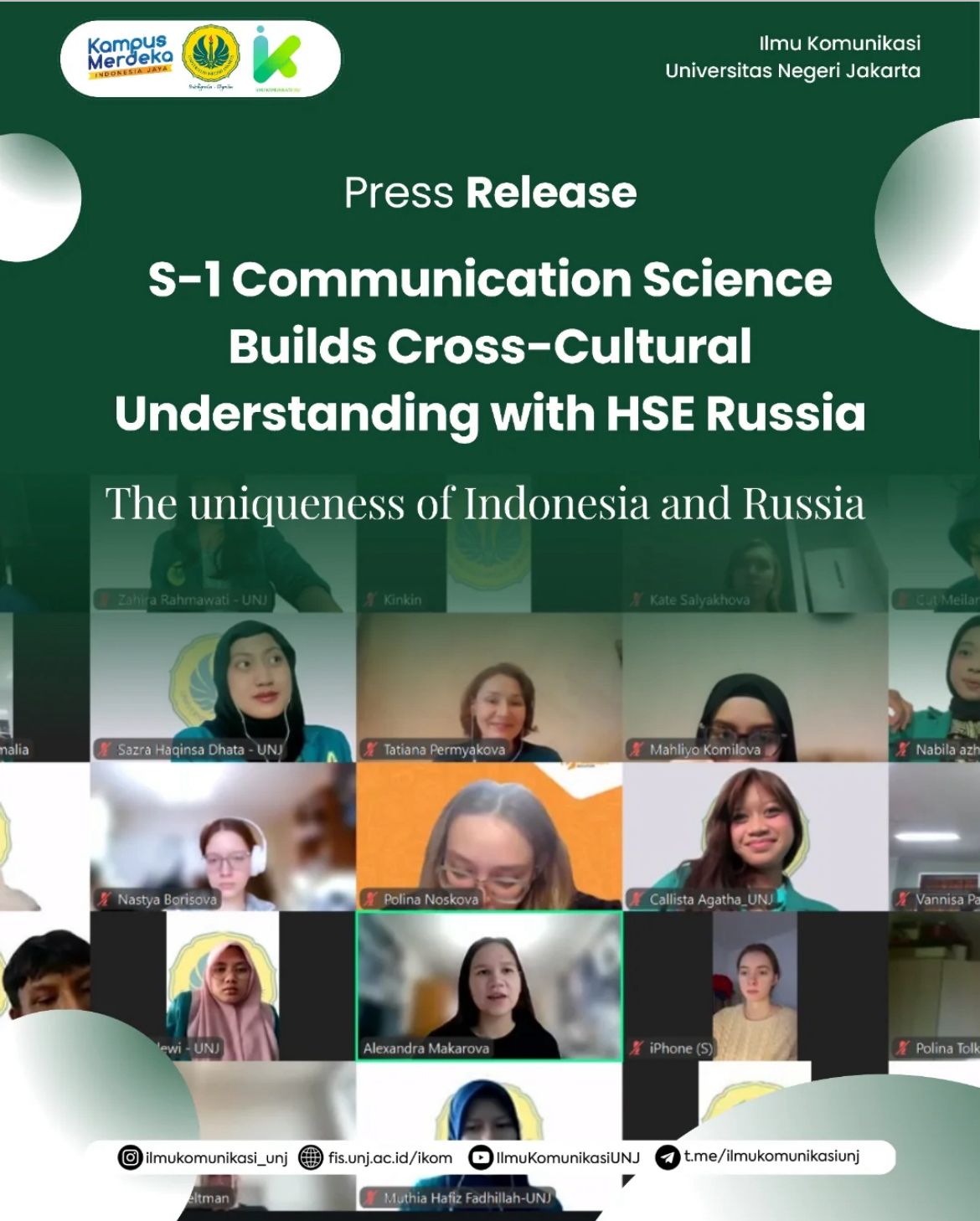 Kegiatan kolaboratif mahasiswa dengan mitra luar negeri untuk memperkuat kompetensi komunikasi lintas budaya.